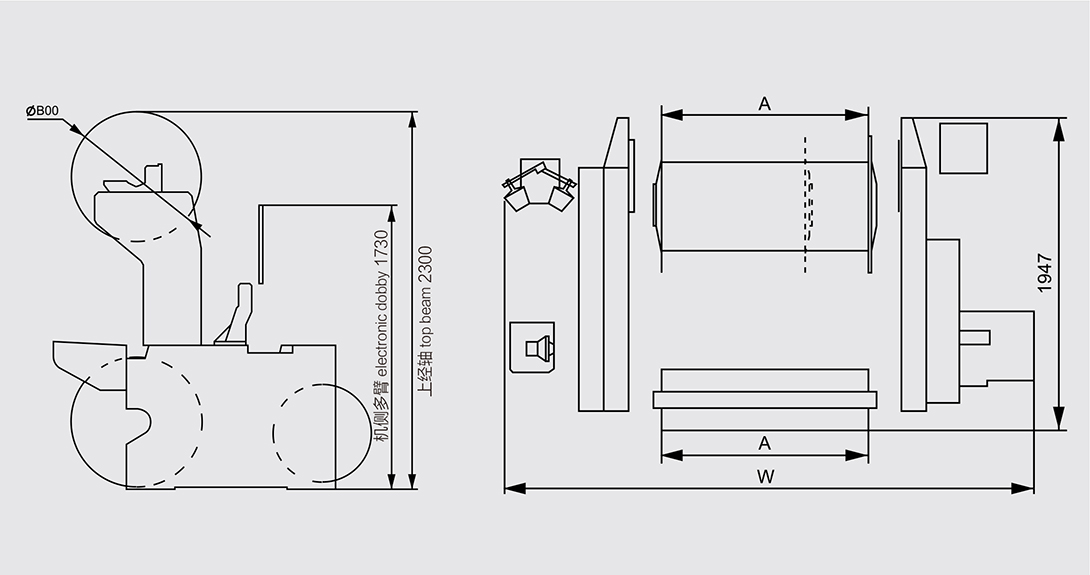 該機(jī)采用模塊組合式設(shè)計(jì)概念,高剛性的機(jī)架,加寬的箱型墻板,獨(dú)特的打緯平衡機(jī)構(gòu),精確的引緯控制技術(shù),造就一款高速、低振動(dòng)、節(jié)能和智能化的新型噴氣織機(jī)。